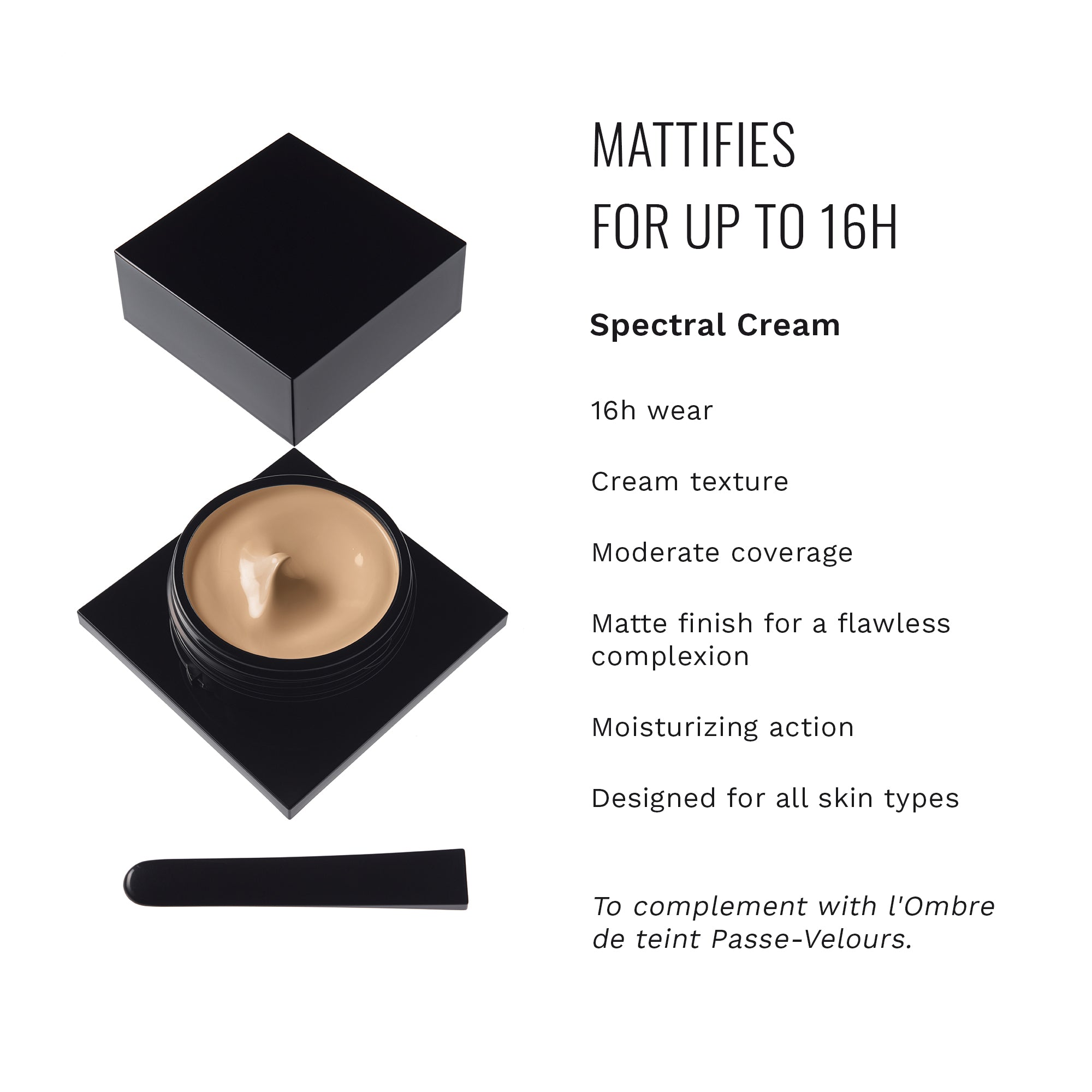 A cream foundation with a matte finish for a perfect, resplendent complexion. Its unique cream texture changes into a light powdery veil for a barely-there look. For an even, matte, flawless complexion. The skin stays hydrated and comfortable for hours. Adjustable coverage: from light to moderate. Suitable for all skin types.